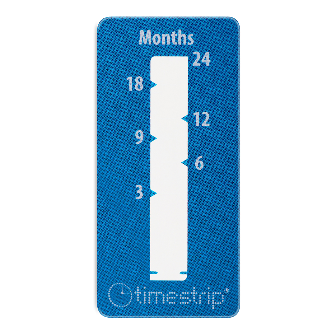 Los indicadores de tiempo Timestrip son pequeños, a prueba de manipulaciones e inertes antes de la activación. Las ventanas son blancas antes de la activación. Se activan a temperatura ambiente, no se requiere acondicionamiento previo. Para productos con blíster en la parte superior: Apriete firmemente el blíster en la parte superior del indicador. Para productos con blíster en la parte inferior: Apriete firmemente el blíster en la parte inferior del indicador. Una vez activado, aparece una línea de activación en la ventana y continúa llenando la ventana con color. El Timestrip se puede aplicar directamente quitando el revestimiento adhesivo de la parte posterior.Utilizado por marcas líderes mundiales