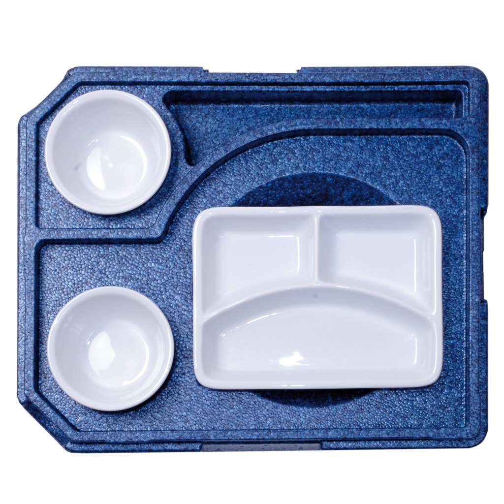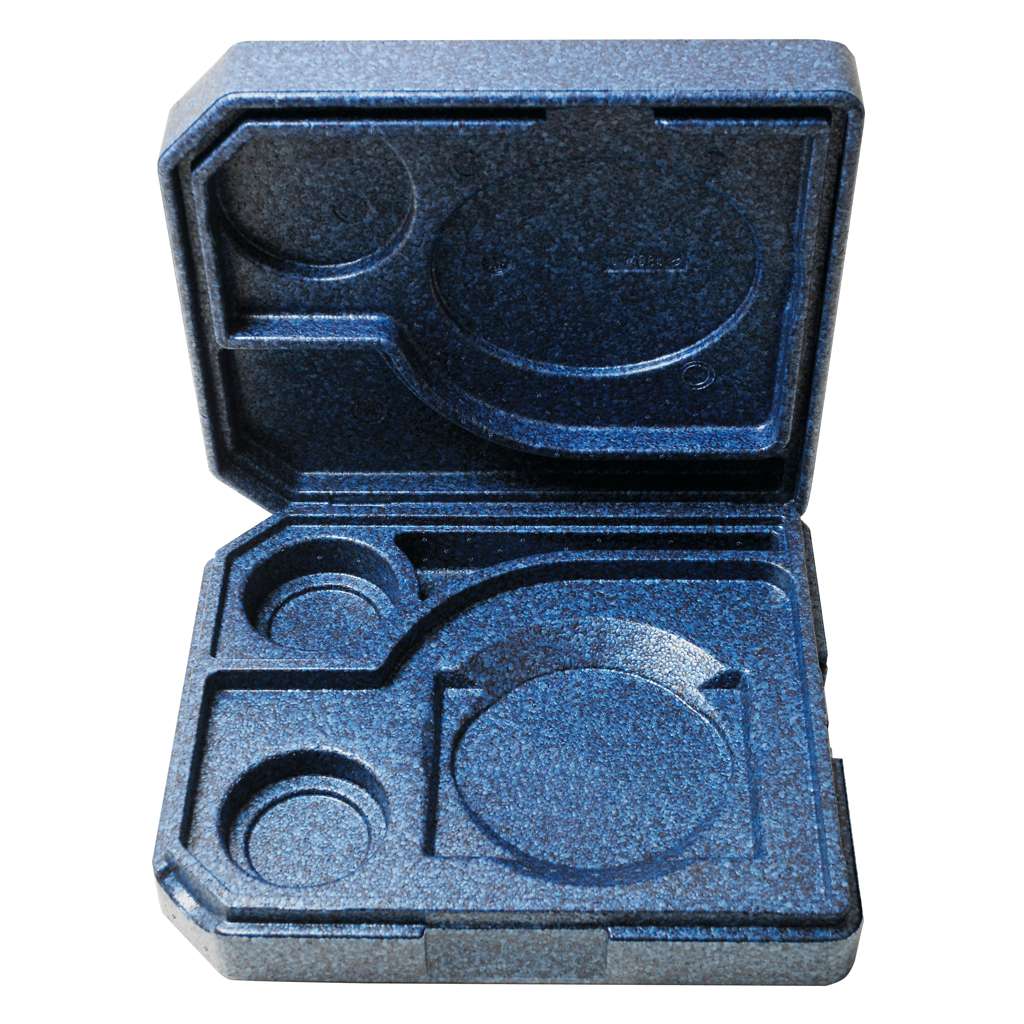Para transportar menús completos, lo mejor es utilizar la Thermo Future Box DINNER +2 hecha de EPP de fácil cuidado en color azul. Cabe un tazón de menú cuadrado O un plato redondo más 2 cuencos de acompañamiento con 300 ml cada uno.